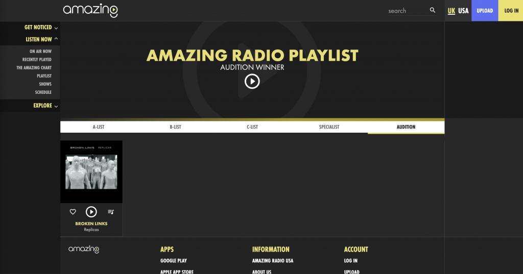 Ruddy hell Link'ers! A massive thank you to all of you for your votes, we won Amazing Radio's Audition poll, so now REPLICAS is part of the stations official playlist for the week!