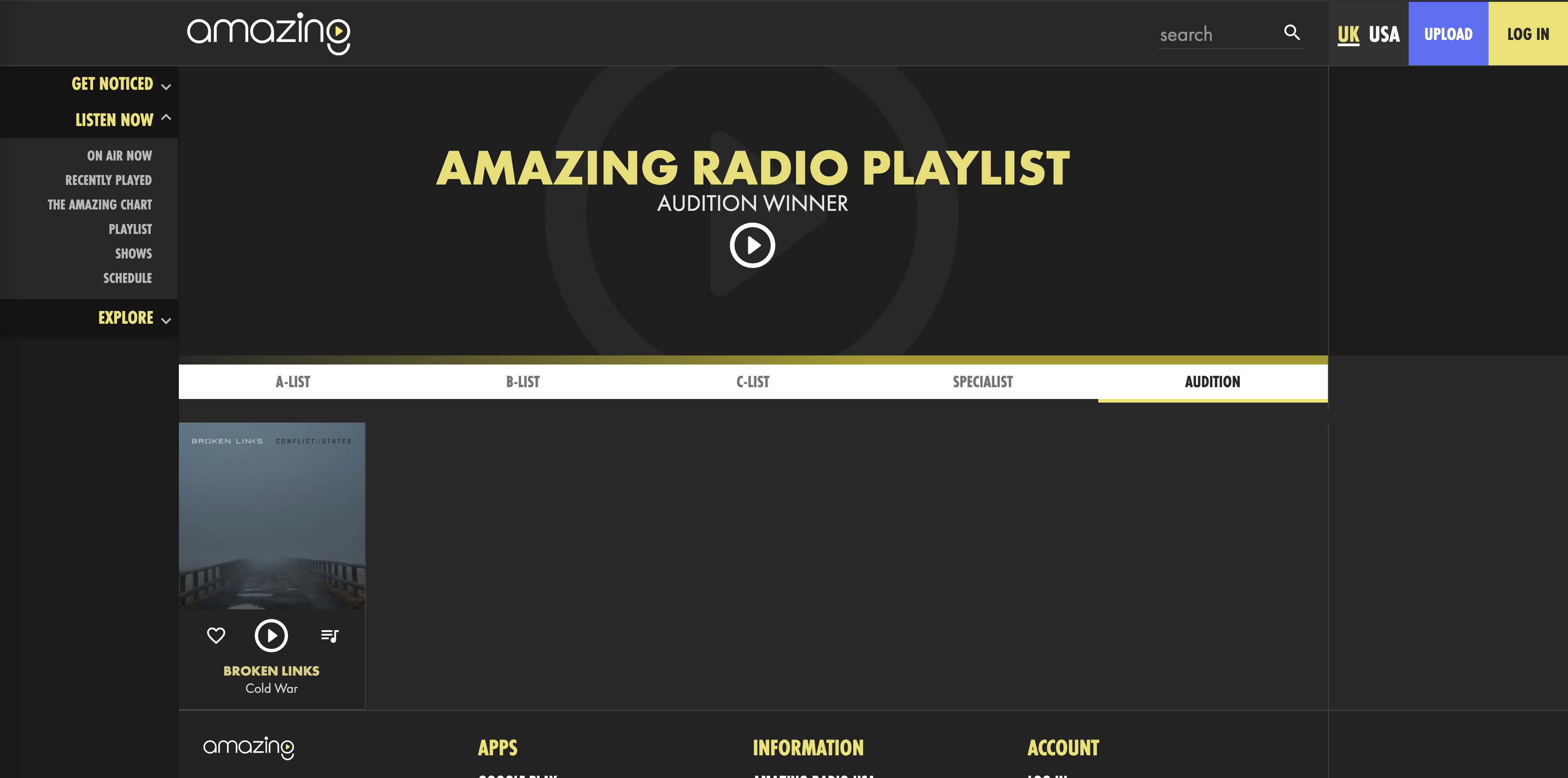 YOU'VE DONE IT AGAIN LINK'ERS!!! The sheer power of the Link'ers votes has won us Amazing Radio's Audition for a 2nd time with COLD WAR! It will now be part of the stations main playlist for the week!